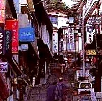 戦国時代には今の石段街がつくられ、江戸時代に庶民の旅が盛んになると賑い、