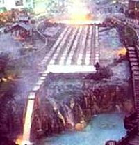 周辺には噴煙を上げる地獄谷、白煙を噴く日和山と灰黒色の熱湯が湧く大湯沼等11種類もの源泉が湧出し、湯量は1日I万トン。旅館やホテルが建ち並び、各地から温泉客が集まる。 |